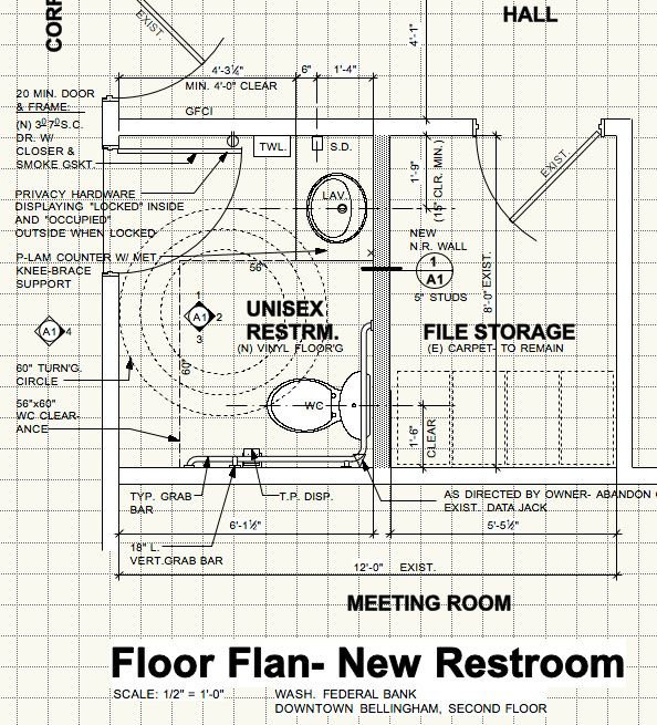 Tricky accessibility upgrade in existing building (Sons of Norway Hall, Bellingham, WA).
